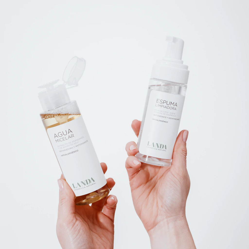 Ingredientes (Agua Micelar): Water, Propanediol, Vaccinium Myrtillus Fruit Extract, Lycium Barbarum Fruit Extract, Punica Granatum Fruit extract, Decyl Glucoside, Sorbitan Oleate Decyl Glucoside Crosspolymer, Sodium Benzoate (and) Potassium Sorbate (and) Aqua (Water), Benzyl Alcohol and Dehydroacetic Acid.